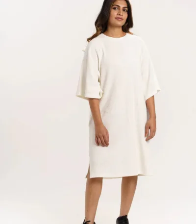 ORGANIC COTTON WAFFLE KNIT LOOSE DRESS with Parchment
